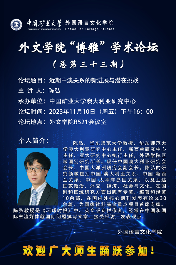 yl23411永利集团官网“博雅”学术论坛(总第三十三期)近期中澳关系的新进展与潜在挑战