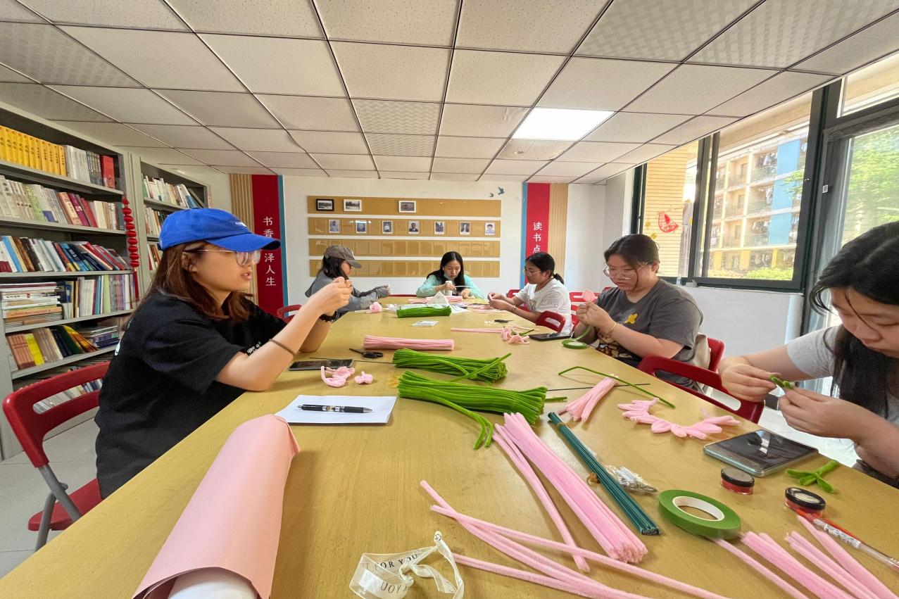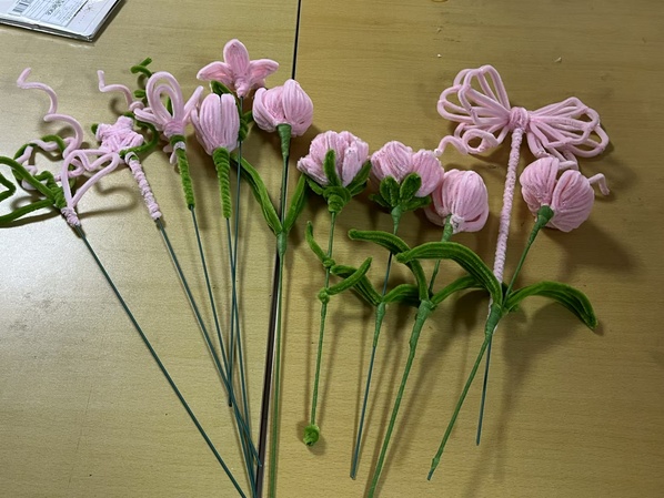 在活动开始前,女生部部长严芬向同学们详细介绍了如何制作扭扭棒花束。活动中,同学们互相交流,分享创意,根据自己的喜好和想法,使用学院准备的扭扭棒和贺卡等,开始着手设计自己的作品。最终一支支扭扭棒在大家的手中变成了一朵朵充满爱意的精巧的花。