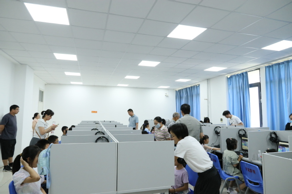 在信控电工电子实验室,电子电工领域的专家老师为参与活动的老师和孩子们上了一堂生动形象的电路启蒙课。接着,在老师的指导下,教职工与子女们都跃跃欲试,现场体验机器人编程,探索科技的奥秘。此后,在永利官网实验中心主任张慧琴老师的带领下,活动人员共同参观了yl23411永利集团官网同声传译实验室和虚拟仿真实验室,苗燕、官濛两位老师现场讲解口译虚拟仿真项目,教职工与子女亲自动手操作VR软件,感受身临其境的翻译情景。
