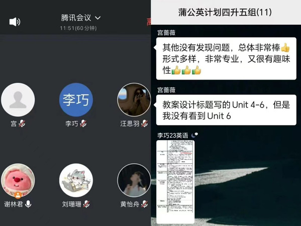 指导老师和志愿者进行线上备课和讨论
