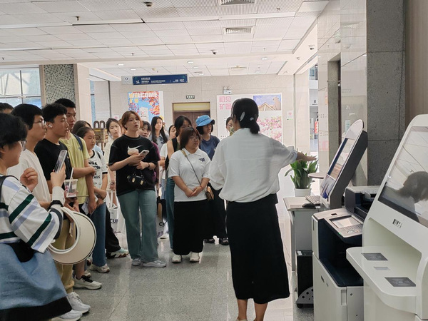 高老师在图书馆一层的服务大厅迎接新生,引导他们熟悉图书馆的各项设施。她详细介绍了自助借阅机和查询机的操作流程,帮助每位新生都能独立完成图书的借阅和资料的检索。详细讲解了座位预约流程,并带领同学们逐层参观。高老师特别强调了图书摆放规则,帮助同学们理解书籍的分类和查找方法,提高借阅效率。她还介绍了五楼学习共享空间的使用方法,鼓励同学们积极利用这一资源,提升学习效率。