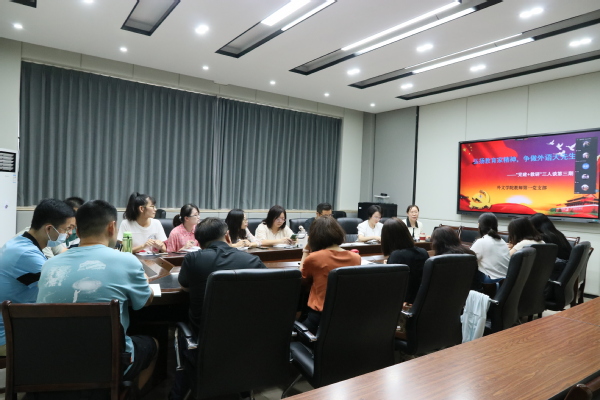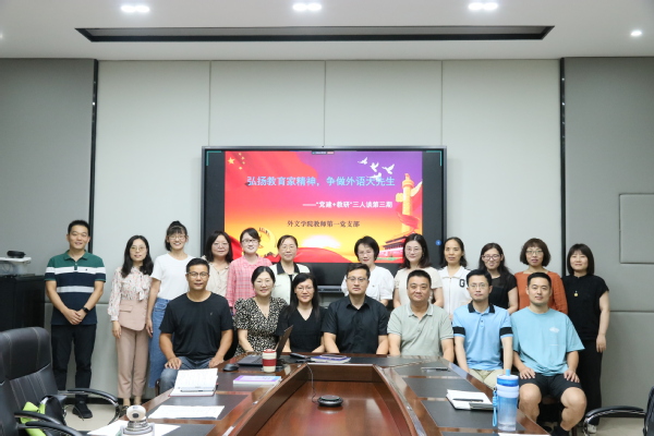 在大力弘扬教育家精神,加快建设教育强国背景下,yl23411永利集团官网教师第一党支部于9月13日下午2点在文B521举行了以“弘扬教育家精神,争做外语大先生”为主题的“党建+教研”三人谈活动。活动由支部书记李淑玲老师主持,刘婷婷副院长、宫蔷薇博士和张晴博士分别进行经验分享,教师第一支部全体党员参加了此次活动。