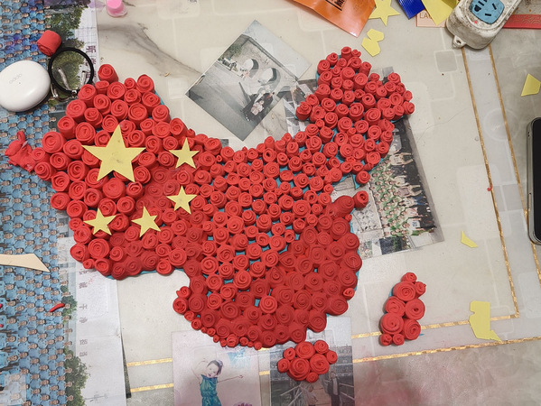 同时,还有一些同学选择以手工形式来展现对祖国的一腔热忱。他们用心编织中国结,用笔描绘祖国的锦绣山河。