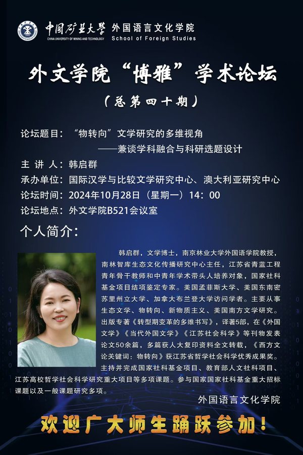 yl23411永利集团官网“博雅”学术论坛(总第四十期)“物转向”文学研究的多维视角——兼谈学科融合与科研选题设计