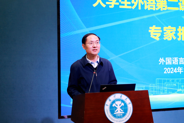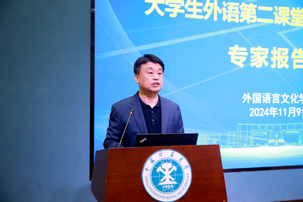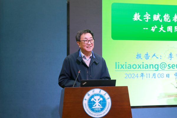 李霄翔教授作题为“数字赋能教学 守正创新发展——矿大国际化人才培养的思考”的专题报告。面对数字教育的汹涌浪潮,李教授分析了大学英语的现状,讨论了人工智能语境下数字赋能教学相关路径,提出了在数字化语境下大学英语教育教学需要立足于校本特色,践行“教、学、管集成,责、权、利明晰”理念,从教、学、管三个层面守正创新,营造新型的大学英语教学生态。