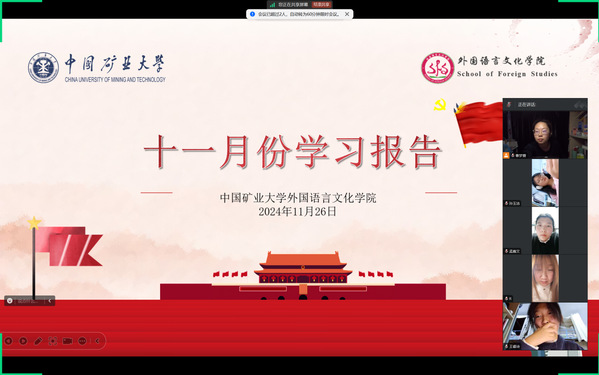 通过视频会议的形式,学生们共同了解了徐州市青年学习社线路,并研读了《习近平与大学生朋友们》(第二卷)第八篇,学习了习近平总书记在福州大学,为2000多名大学生作的题为“当前福建经济社会发展情况和国内外形势”的省情报告。在随后的讨论环节中,学生们积极发言,交流了自己对报告内容的深刻理解和独到感悟,展现了新时代青年学子的敏锐洞察力和责任感。