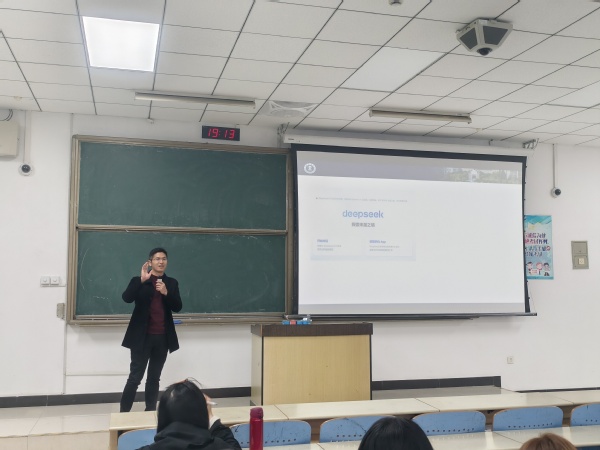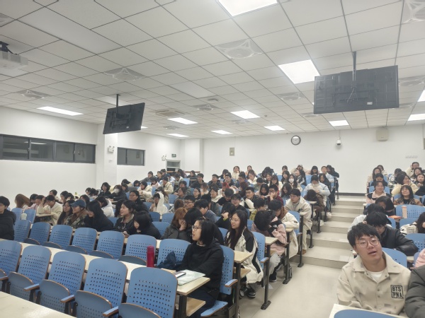 朱正中以近期人工智能领域热点DeepSeek以及近期热映影片《哪吒》为切入点,引导学生关注时代发展趋势,学会认识AI、拥抱AI。他通过一系列图片,回顾了同学们进入大学以来的点点滴滴,并通过详实数据通报了2024届毕业生深造和就业情况,并对上一年度学院第二课堂开展尤其是外语类学科竞赛的情况做了分析。针对学生关切的转专业问题,他建议同学们要立足自身定位,科学规划,避免盲从。他对同学们提出了希望和要求:认清自我,做规划有方的自己;善待一切,做从容不迫的自己;规律作息,做健康有力的自己;广泛涉猎,做腹有诗书的自己。做到自尊、自信、自立、自强,成为身体有力、眼里有光、心里有爱、腹中有才、胸中有志、肩上有责的时代新人。