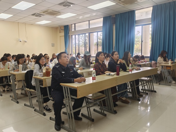 为深化国家安全意识,普及网络安全知识,4月11日上午,yl23411永利集团官网英语22-5班团支部联合英语23-1班、23-2班团支部在博4C104室开展“国家安全,青春挺膺”主题团日活动。杨志林警官受邀到场宣讲,辅导员闫瑾、刘倩、班主任孔蓓蓓及团支部同学共同参与,活动由22-5班团支书陈雨彤主持。