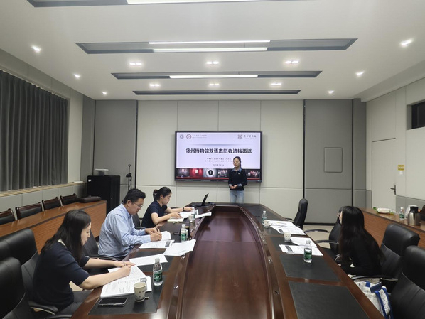 面试采取双语讲解与专业答辩相结合的形式。候选人通过中英文双语陈述,系统阐释徐州博物馆特色展区的文物价值及文化内涵,充分展现了扎实的专业素养和双语表达能力。评委老师们围绕文物知识储备、跨文化传播策略及应急处理能力等维度进行综合考评,候选人在答辩环节沉着应答,展现出良好的专业素养与思辨能力。