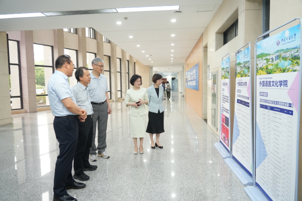 5月22日下午,教育部高等学校外国语言文学类专业教学指导委员会主任委员、北京外国语大学原副校长孙有中教授、外语教学与研究出版社副总编辑常小玲女士、江苏省高校外语教学研究会常务副会长王海啸教授等一行来永利官网指导交流。院长祖大庆、副院长刘婷婷陪同参观交流。