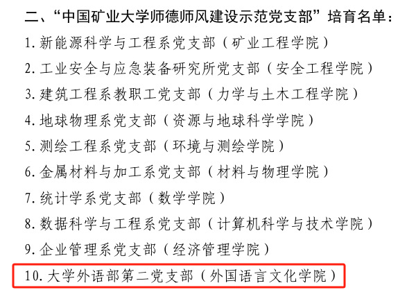 近日,学校公布了第二批师德师风建设示范学院、示范党支部培育名单,永利官网大学外语部第二党支部成功入选师德师风建设示范党支部培育单位,培育周期为两年。