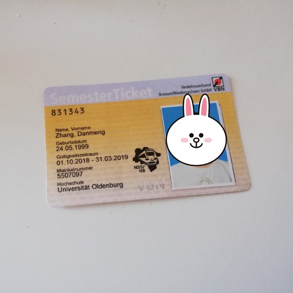 关于在这里的学习,到达的第二天就有一场分级考试,划分了德语水平,这样可以方便学生选择适合自己水平的课程,唐孝敏和颜玲琪处于Oberstufe,选了Deutschkurse 8的课,我,王洁君,苏世欣选择了DK7的课。该考试的最高成绩就是DK8。我们在只学了两年德语的情况下,取得这个成绩还是相当不错的。前两周是注册周,前几天学校的国际学生处会有工作人员给我们开会,负责老师都很和蔼,他们会告诉我们在学校里上课的相关事宜。第一周周末时,我们终于拿到了自己的学期卡(如左图)。他们的学期卡只是一张纸,和我们的不太一样,不可以用来刷卡,不过用这个学期卡可以在奥尔登堡免费坐公交车,还可以免费乘坐大部分的公共交通工具,有效范围涵盖了周围的好几个城市。第二周选完课以后就该开始照常上课啦~手握强大的学期票,当然我们要深入认识一下德国了。这个周末我们组团去了一下不来梅,不得不感慨一下教堂⛪️的风景真的很美!(如图右下)一开始会有人问我们在这里适应不适应的问题,我没有觉得不适应,大多数人不适应可能都是不适应这里的吃饭以及在陌生的国度里想家,但是吃饭的话其实可以在家里自己做饭的,想家这个也不是问题,我只有第一晚比较想家,但是我来到这里两周只和爸爸妈妈语音通话了一次,时长两分钟,因为在陌生的国度Heimweh是不会让自己长大的,而且出门看一看,这个世界上好人还是占大多数的,即使一开始不适应新的环境不知道陌生的路怎么走,问一问总会有热心的人帮助我们的!刚来到这里的时候遇到了一个很好的清洁工阿姨,她带着我们找打印店陪我们步行了三条街把我们送到以后再自己走回去工作地点,真的是很好的人,而且学了德语就是要用的,到哪里不会的问一问就好了!