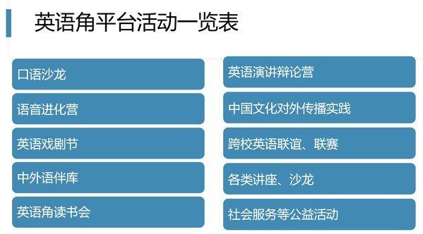本次见面会促进了社团之间、师生之间的了解,加深了社团同学对英语角平台的认识,为新学年各部门的协同合作打下了基础。
