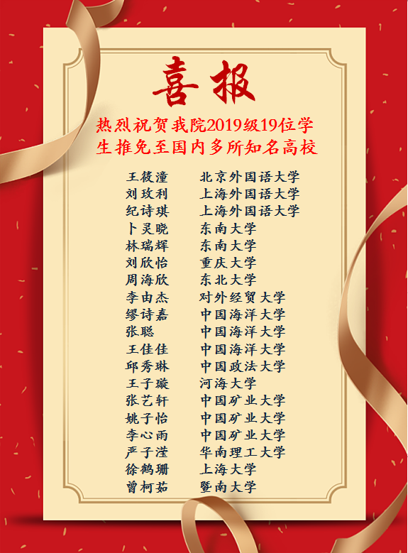 喜报:热烈祝贺永利官网2019级19位学生推免至国内多所知名高校